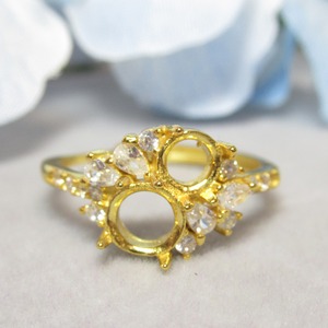 5㎜ 6㎜ 2粒 フラワーCZ S925 リング台 YG