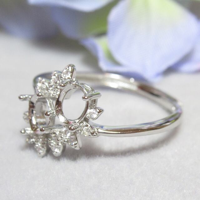 5×4㎜ 2粒 フラワーフレームCZ S925 リング台 SV