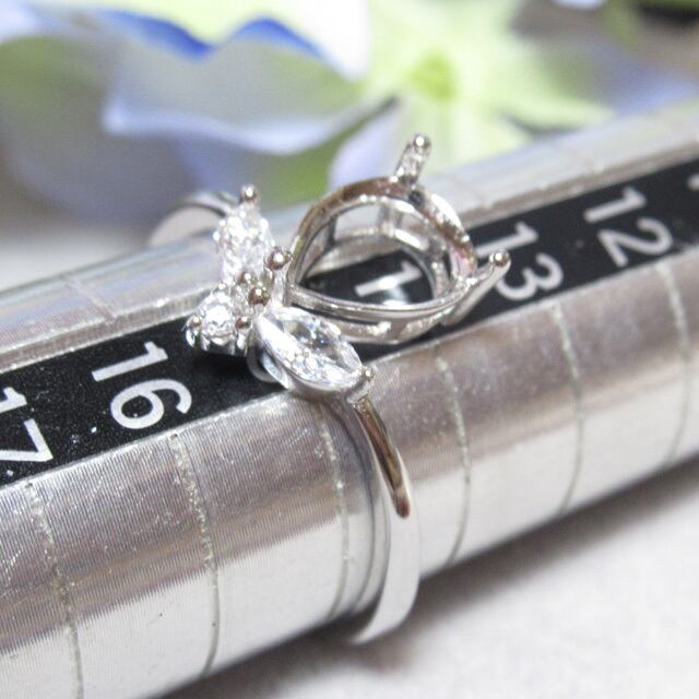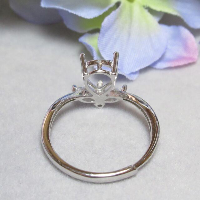 9×7㎜ ドロップ フロート リーフCZ S925 リング台 SV