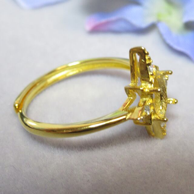 7×5㎜ 八芒星CZ S925 リング台 YG