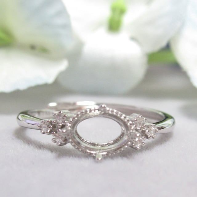 7×5㎜ 横向き ミルフレーム 3CZ S925 リング台 SV