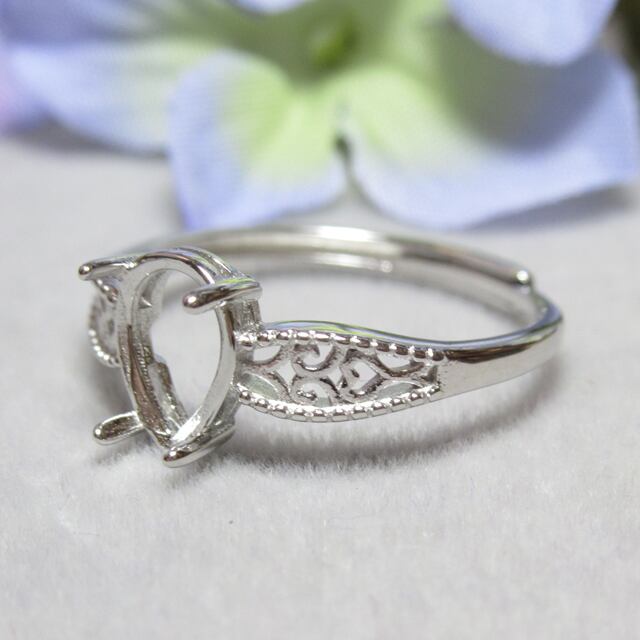 8×6㎜ ドロップ 4爪 フィリグリー S925 リング台 SV