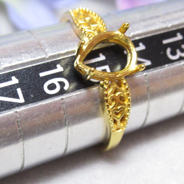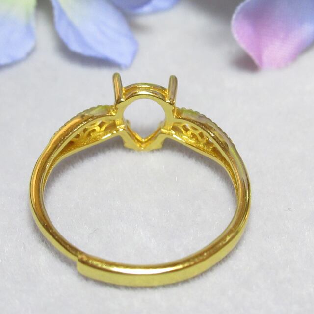 8×6㎜ ドロップ 4爪 フィリグリー S925 リング台 YG