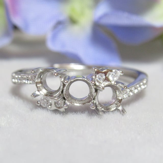 4㎜ 3粒 アンクリネCZ S925 リング台 SV