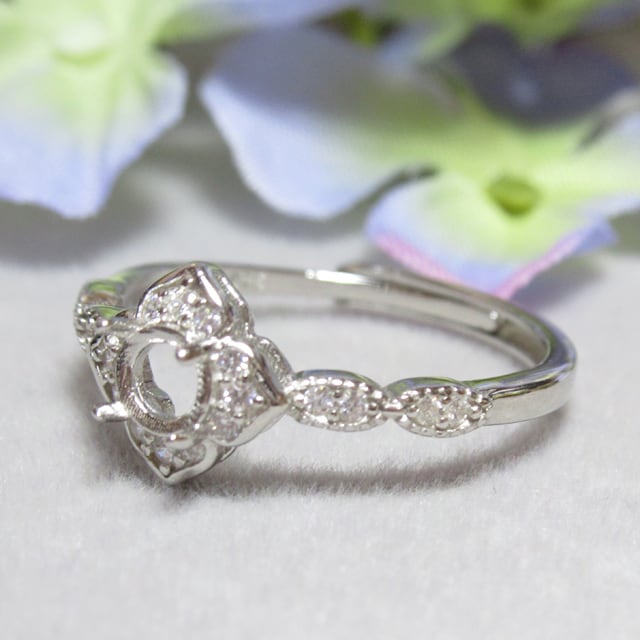 4㎜ フラワーフレーム マーキスCZ S925 リング台 SV