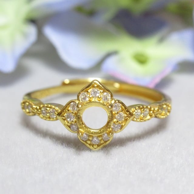 4㎜ フラワーフレーム マーキスCZ S925 リング台 YG