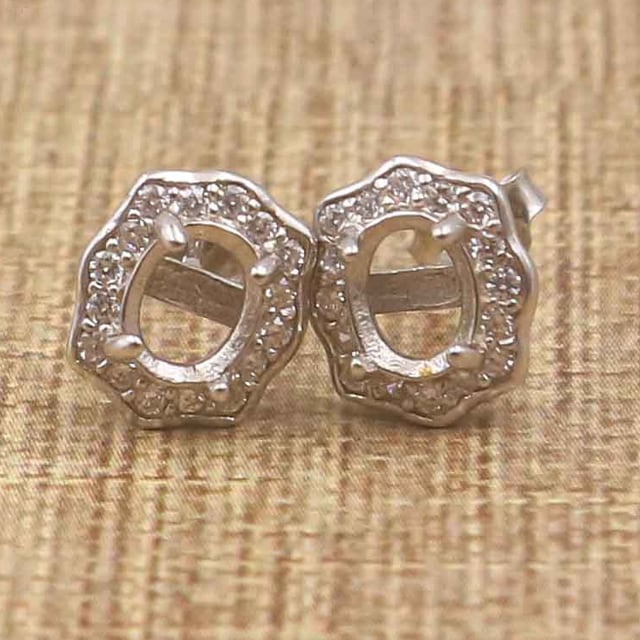 5×4㎜ 八角CZフレーム ピアスセッティング S925 SV