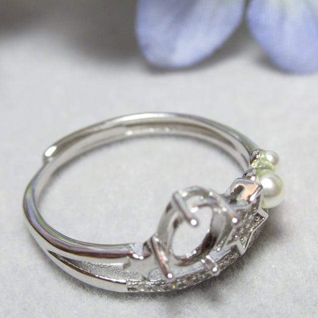 アウトレット6×4㎜ スターパール CZライン S925 リング台 SV