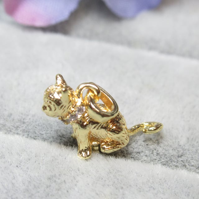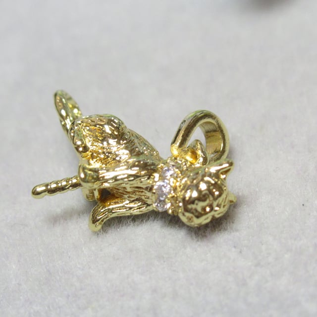 銅 玉乗りネコ  ペンダント 芯立て セッティング YG