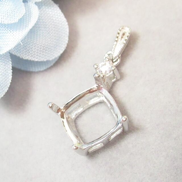 8㎜ スクエア バチカンCZ クロス4爪 S925 ペンダント セッティング SV