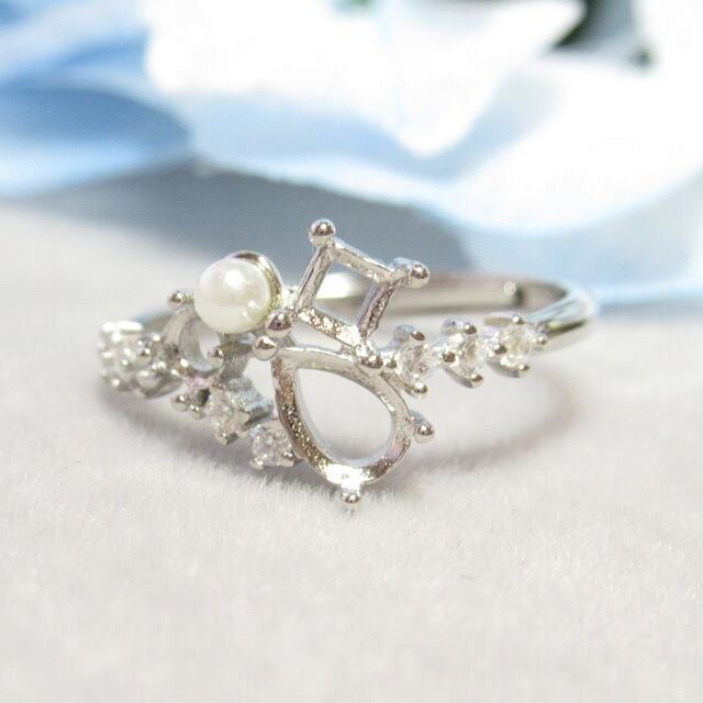 6×4㎜ 雫 3㎜ 四角 円 S925 パール リング台 SV