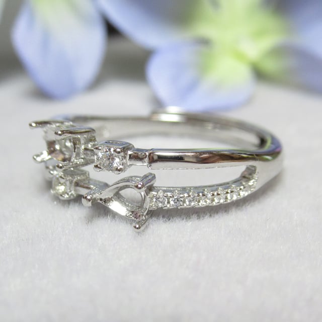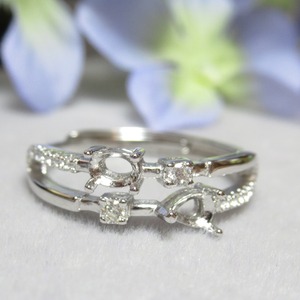 4×3㎜ ドロップ オーバル 2粒 ダブルCZライン S925 リング台 SV