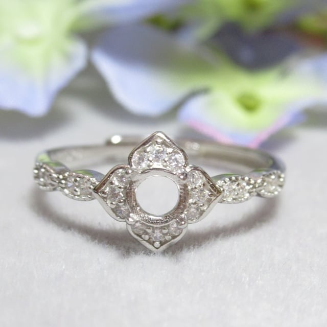 4㎜ フラワーフレーム マーキスCZ S925 リング台 SV