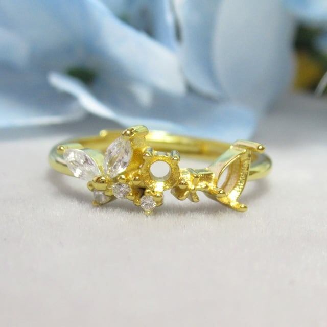 5×3㎜ 雫 3㎜ 円 バタフライCZ S925 リング台 YG
