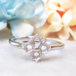 アウトレット3㎜×4粒 フラワー S925 リング台 SV