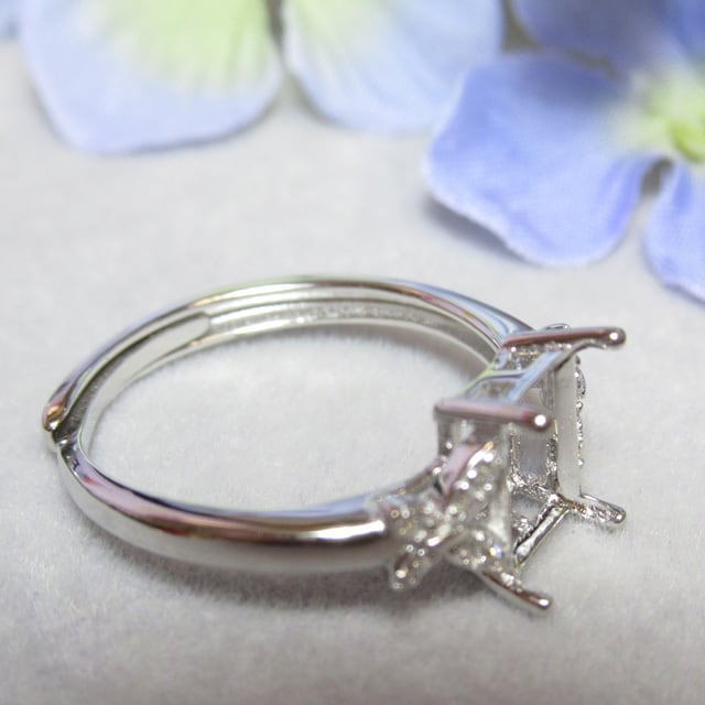 アウトレット8×6㎜ レクタングル バタフライCZ S925 リング台 SV