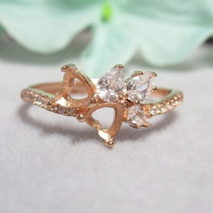 お客様専用ページ  12/5  4㎜ ハート 2粒 リーフCZ S925 リング台 PG