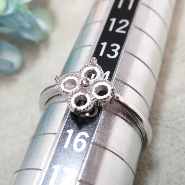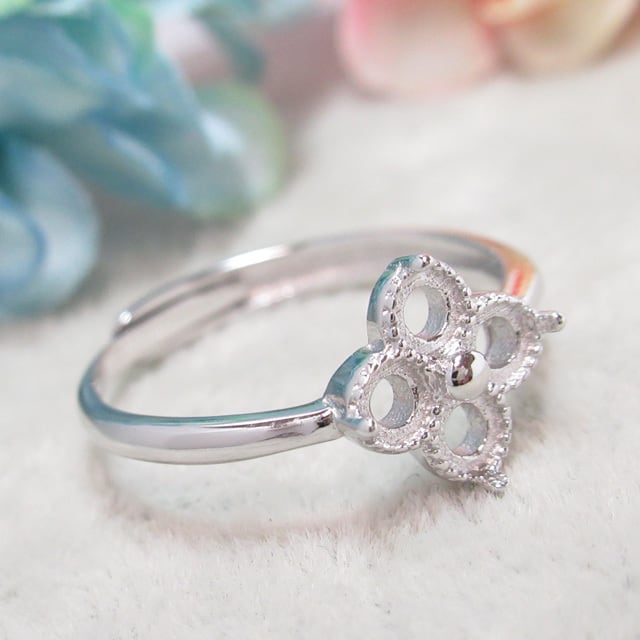 アウトレット3㎜×4粒 フラワー 平底 S925 リング台 SV