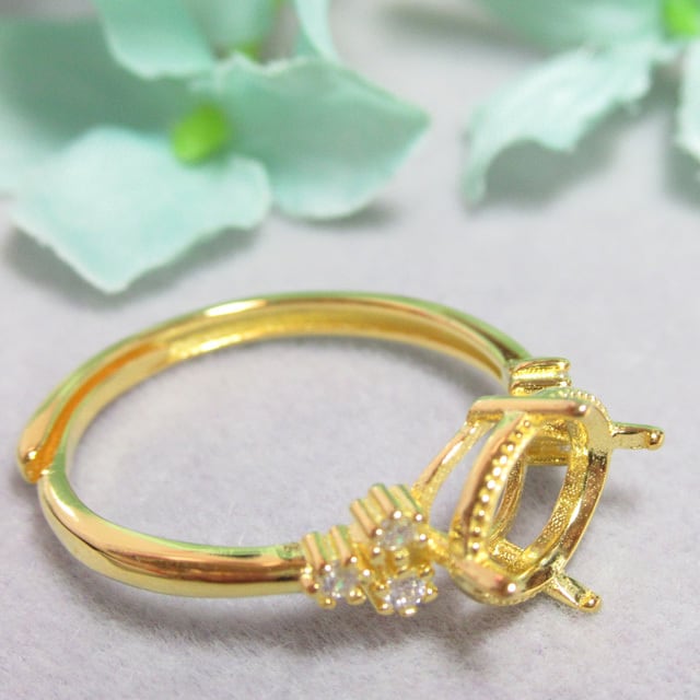 アウトレット9×7㎜ 横向き ミルフレーム 3CZ S925 リング台 YG