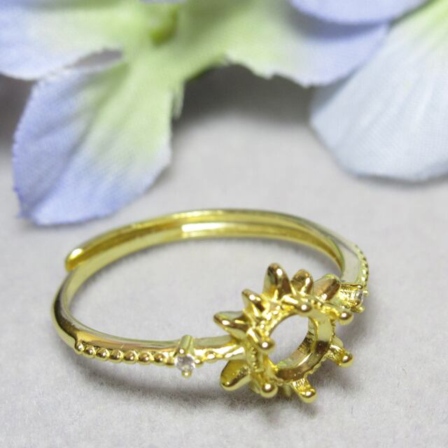 アウトレット5㎜ ステラ 6爪 ミルラインCZ S925 リング台 YG