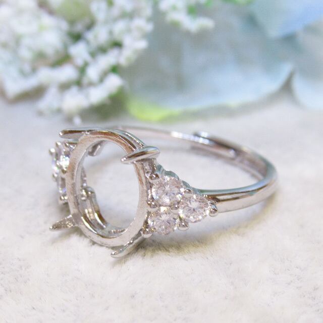 アウトレット11×9㎜ オーバル S925 トリプルCZ リング台 SV