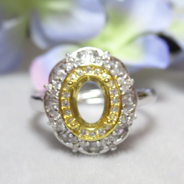 7×5㎜ ダブルCZフレーム インレイ S925 リング台 SV