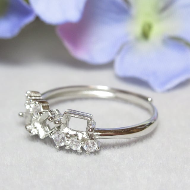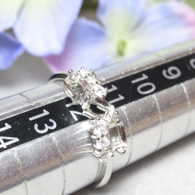 4×3㎜ レクタングル 3粒CZ S925 リング台 SV
