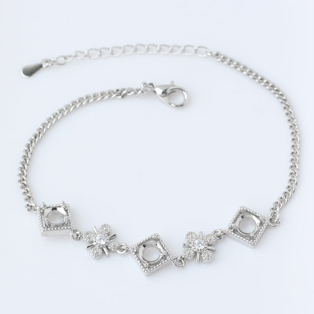 • 銅合金 5㎜ ミルスクエアフレーム フラワー 3粒 ブレスレット SV 銅合金 5㎜ ミルスクエアフレーム フラワー 3粒 ブレスレット SV ¥780