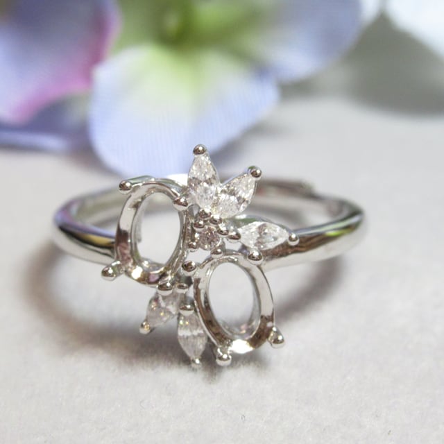 6×4㎜ 2粒 リーフCZ S925 リング台 SV