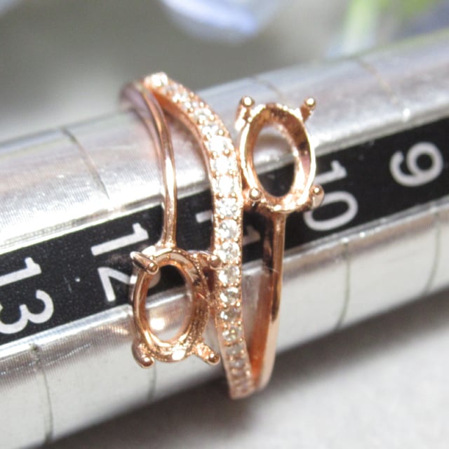 アウトレット6×4㎜×2粒 CZウェーブライン S925 リング台 PG