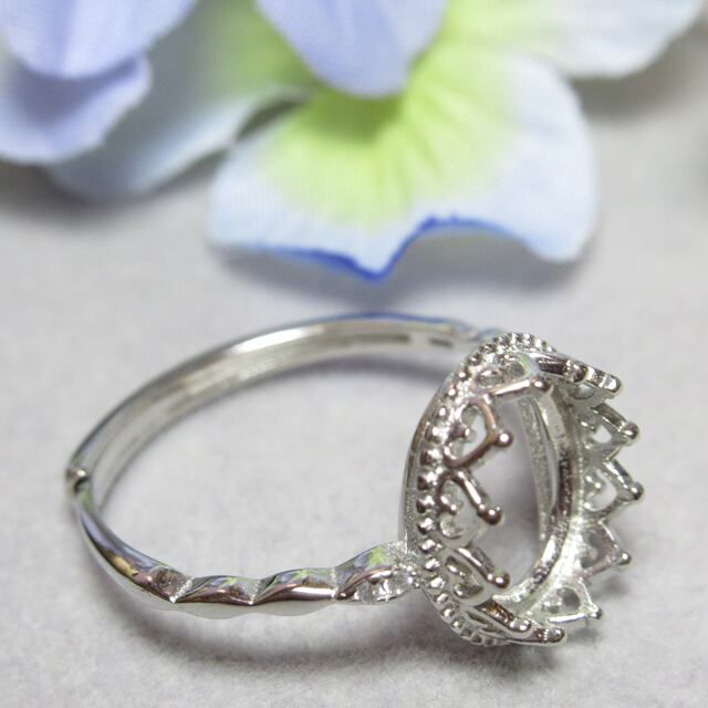 10×8㎜ ハートクラウンCZ ボビン S925 リング台 SV
