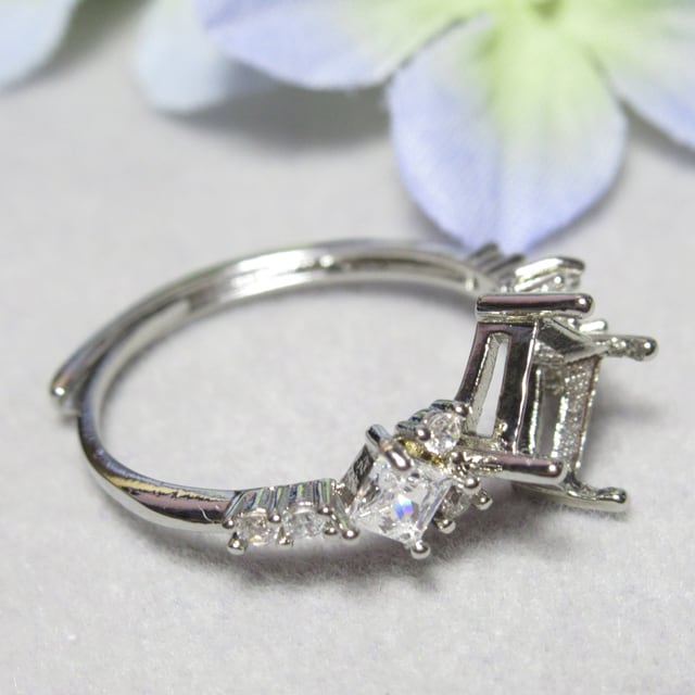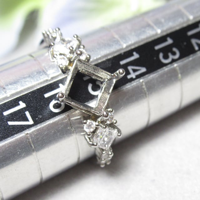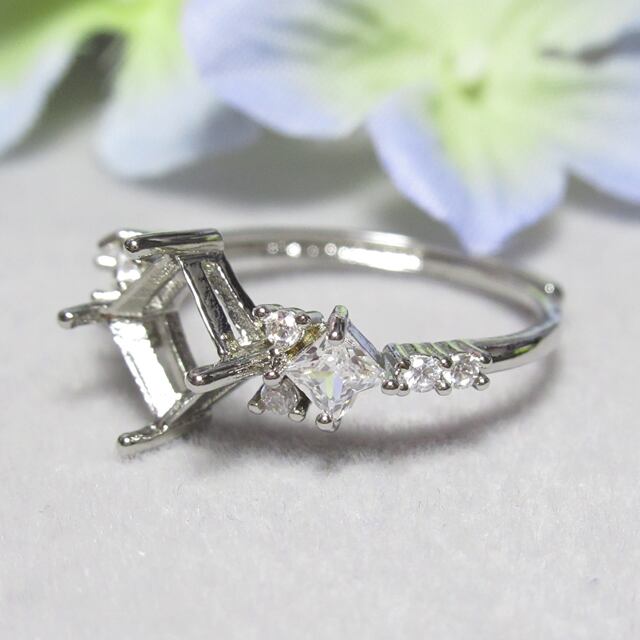 銅 6㎜ スクエア クロス4爪 リボンCZ リング台 SV
