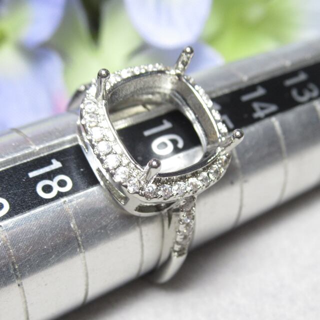 銅 10㎜ クッションスクエア CZフレームライン リング台 SV