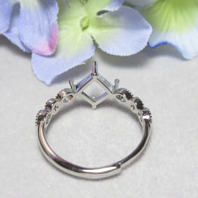 • 銅 6㎜ スクエア クロス4爪 リボンCZ リング台 SV 銅 6㎜ スクエア クロス4爪 リボンCZ リング台 SV ¥680