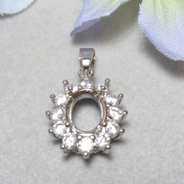 銅 9×7㎜ 大粒CZフレーム ペンダント セッティング SV