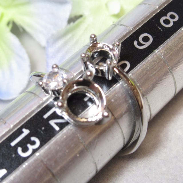 銅 6㎜ 5㎜ 2粒 1CZスパイラル リング台 SV