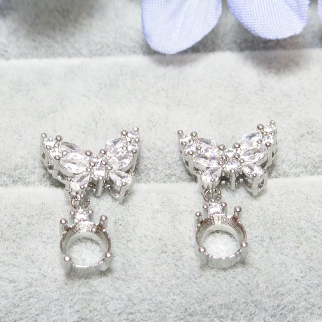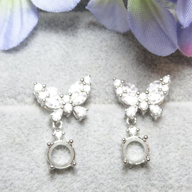 銅 1ペア 6㎜ バタフライCZ スイング ピアスセッティング SV