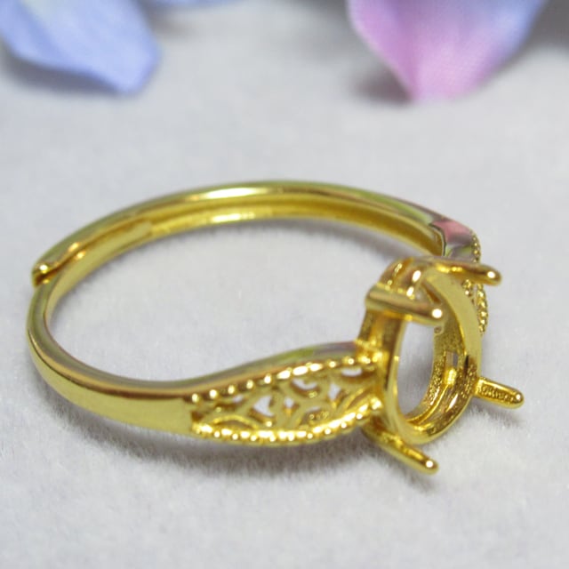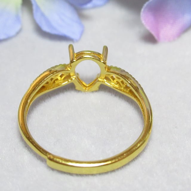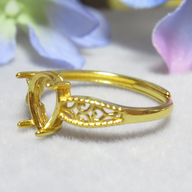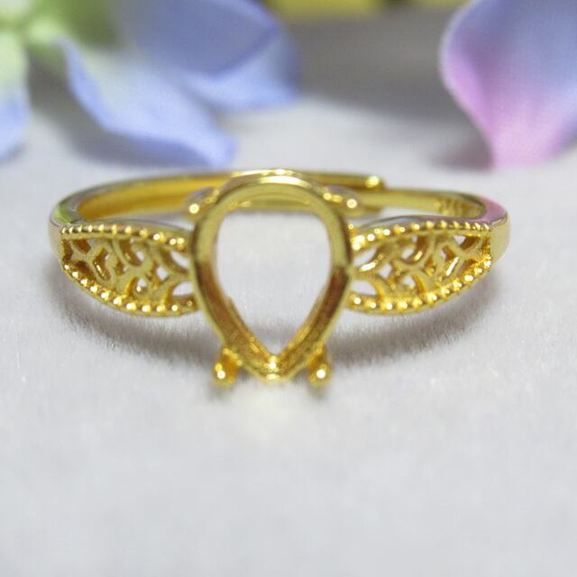 アウトレット8×6㎜ ドロップ 4爪 フィリグリー S925 リング台 YG