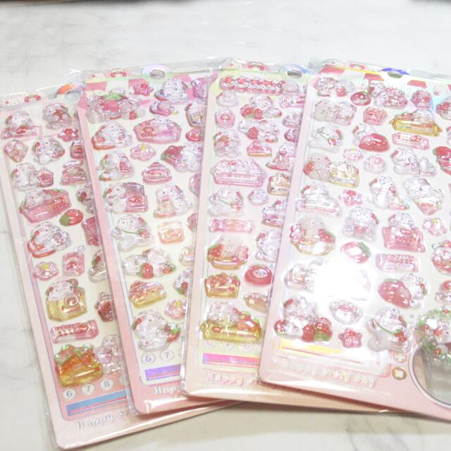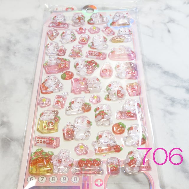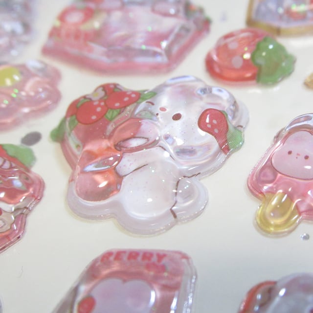 ぷっくりシール 3D イチゴウサギ