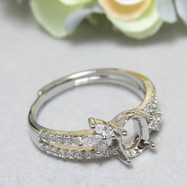 銅 7×5㎜ 3リーフ ダブルCZライン リング台 SV