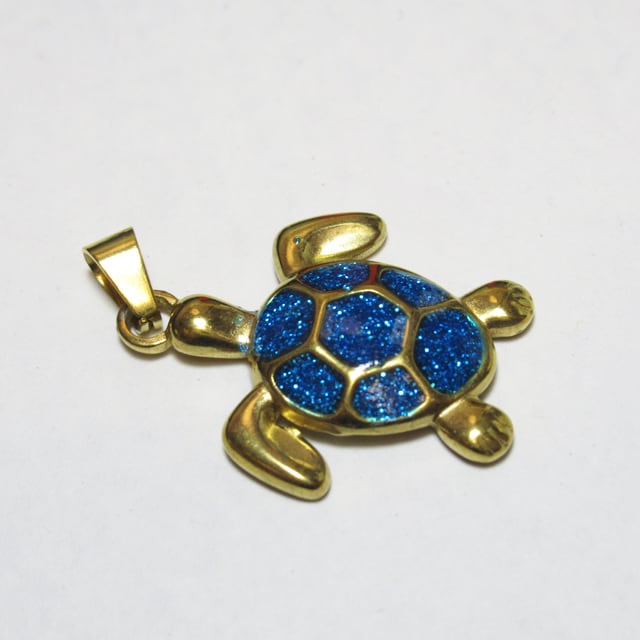 ステンレススチール  ホヌ  シャイニーラメブルー ペンダント ゴールド