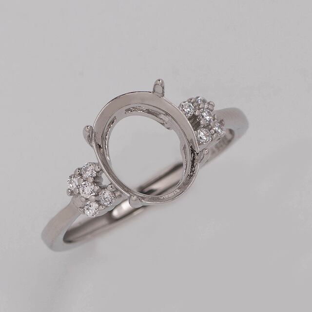 アウトレット8×6㎜ CZフラワー S925 リング台 SV
