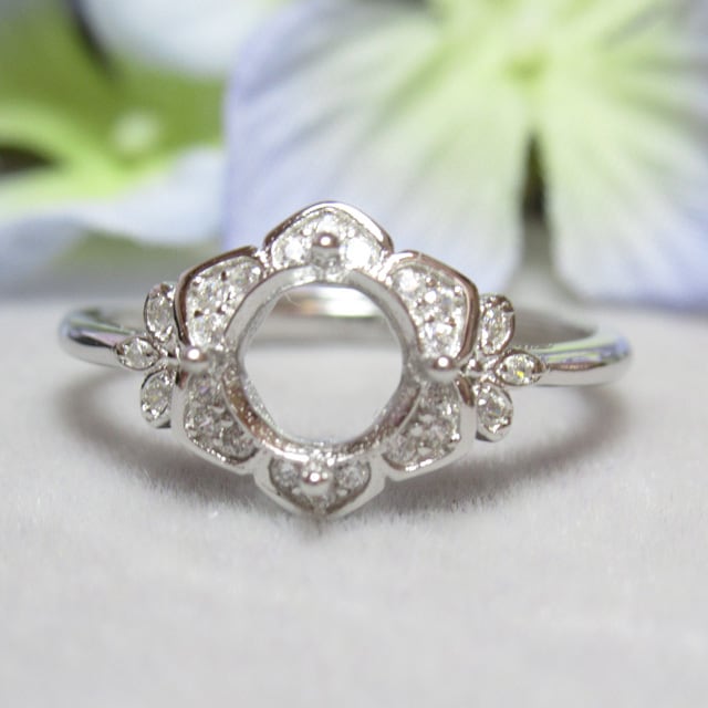 アウトレット6㎜ フラワーパヴェフレーム S925 リング台 SV