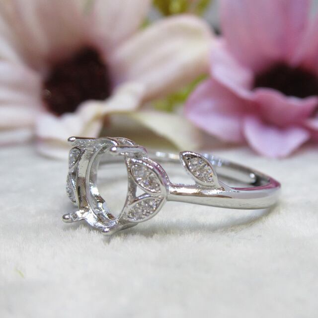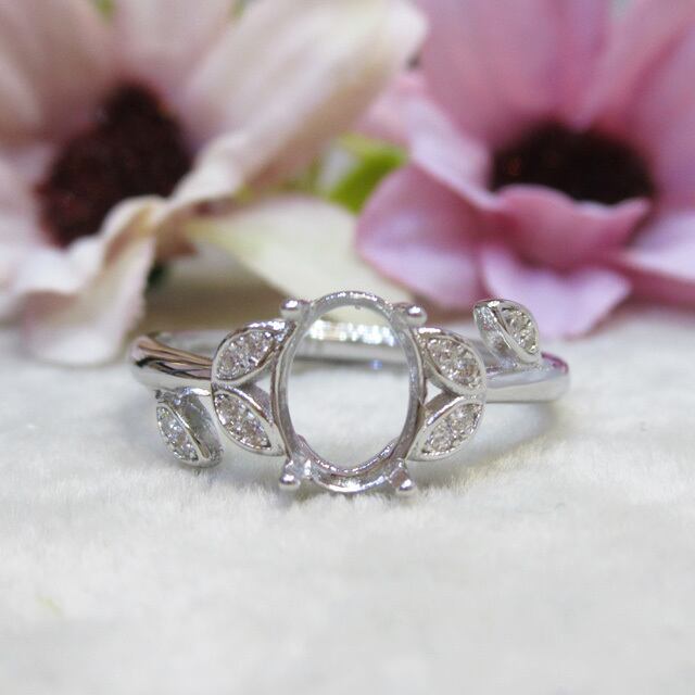8×6㎜ フラワーリーフCZ リング台 S925 SV
