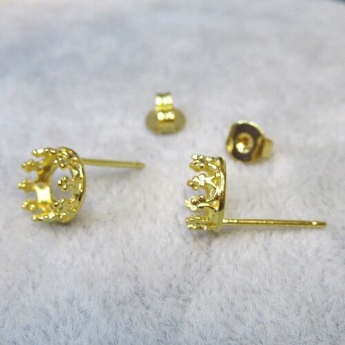 アウトレット 1ペア 6㎜ ラウンド クラウン ピアスセッティング S925 ゴールド