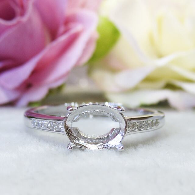 8×6㎜ 横向き ラインストーン S925 リング台 SV
