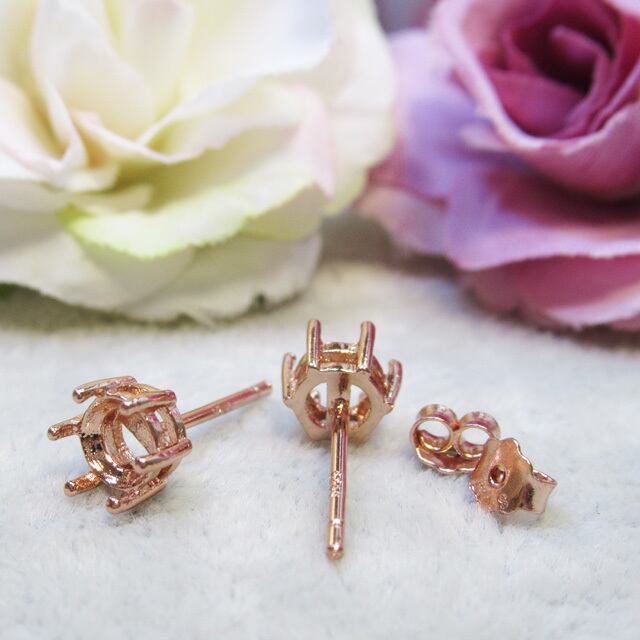 1ペア 5㎜ ラウンド 6爪 ピアスセッティング S925 PG