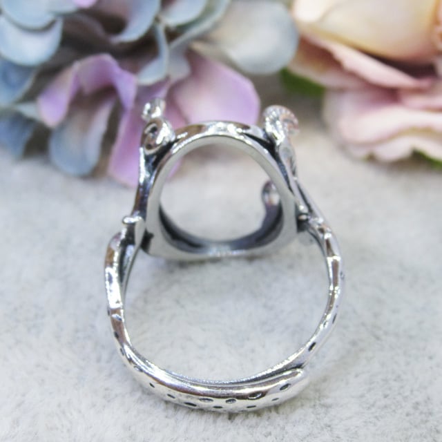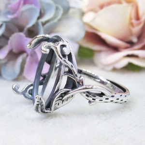18×13㎜ 唐草4爪 S925 リング台 銀古美