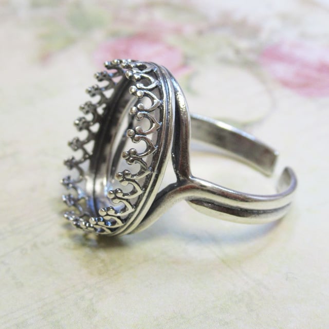 アウトレット16×12㎜ オーバル クラウン リング台 銀古美
