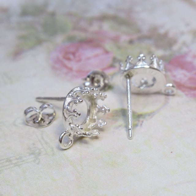 1ペア 6㎜ ラウンド クラウン ピアスセッティング  カン付  S925 シルバー